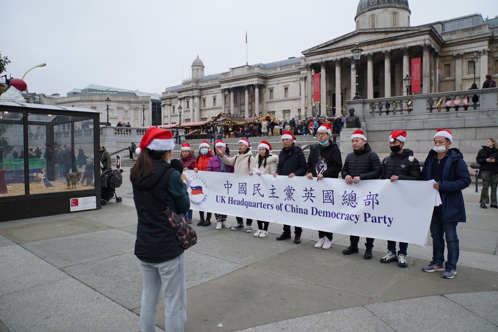 中国民主党英国总部于2021年12月19日在特拉法加广场举行圣诞节庆祝活动,祝愿全世界人民和平、快乐!遥祝中国大陆追求民主、自由、人权和法治的广大维权人士、异议人士、宗教人士和中国民主党人圣诞节快乐!祝全国各族人民、台湾、香港、澳门同胞和海外侨胞圣诞节快乐!