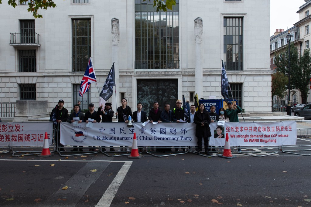The UK headquarters of China Democracy Party held a protest in front of the Chinese embassy in London. Strongly demand the release of Dr. Wang Bingzhang and solidarity with Sitong Bridge warrior Peng Lifa.