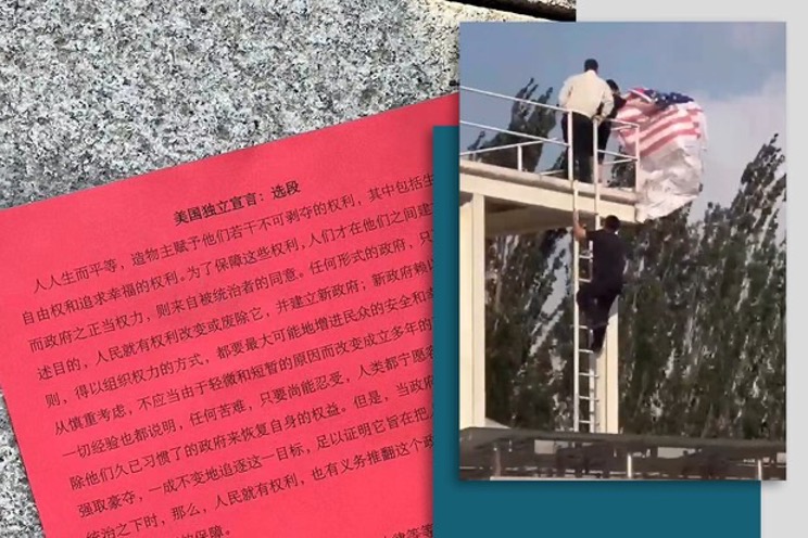 在中国、香港以及其他受共产主义暴君所染指的地方,星条旗是一个特殊的象征,它象征着人民对僭主最激烈的抗争情感。然而这个世界是如此的讽刺,以至于星条旗可以保护那些在自由的土地上焚烧和践踏它的暴君拥趸者的自由,却不能保护那些在暴政下手持星条旗热爱自由勇敢地面对暴君全部军队的人民;它可以保护那些在美国玩革命模拟游戏的马克思主义懦夫,却保护不了那些用鲜血浇灌自由之树的革命者。
