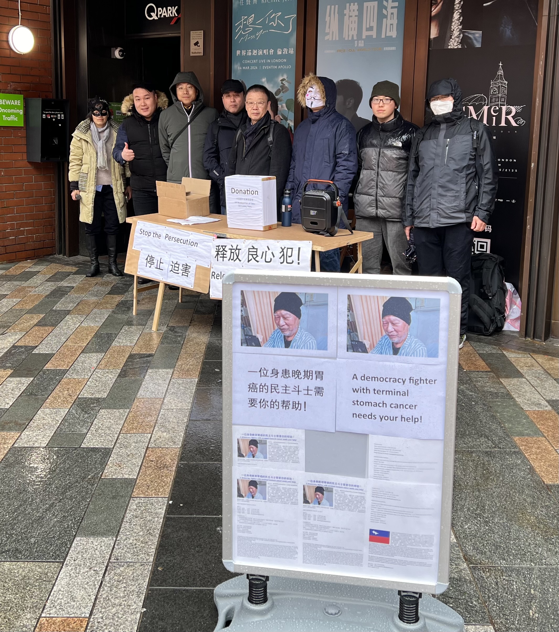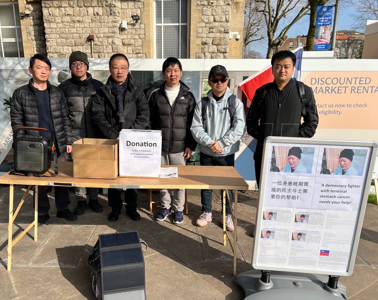In response to the call of the “China Democracy Party Zhu Yufu Rescue Committee”, the UK headquarters of China Democracy Party held three consecutive fundraising activities on March 3, March 5, and March 10, 2024. The locations are in front of the Chinese Embassy in the UK, at the entrance of Ealing Broadway subway station in west London, and in London’s Chinatown.