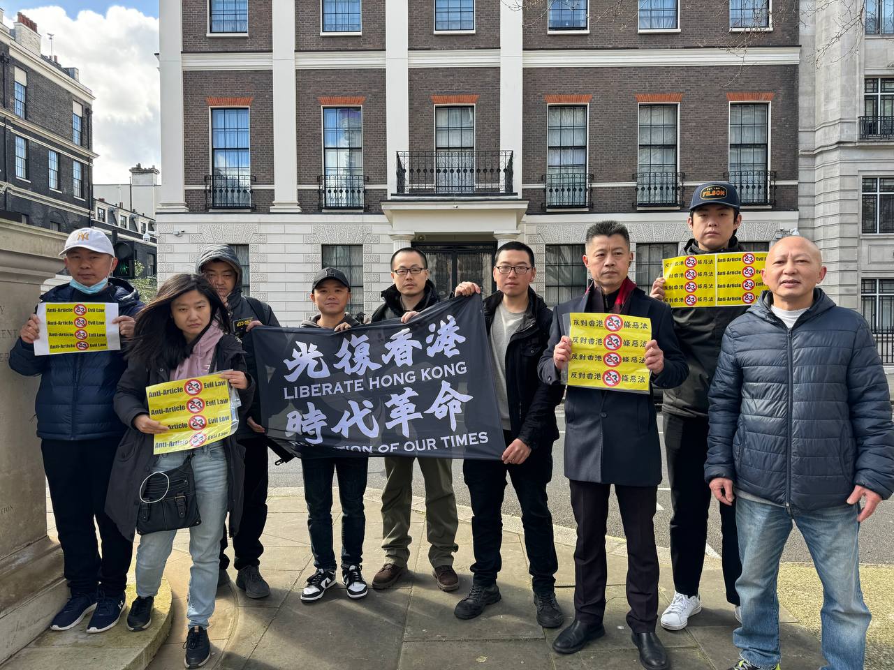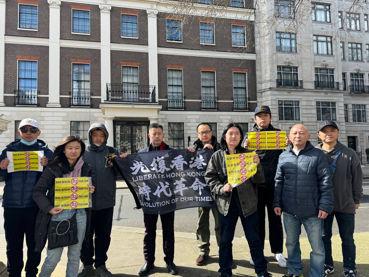 The UK Headquarters of China Democracy Party held a protest demonstration on March 23 against the “23 Articles” imposed on HK.