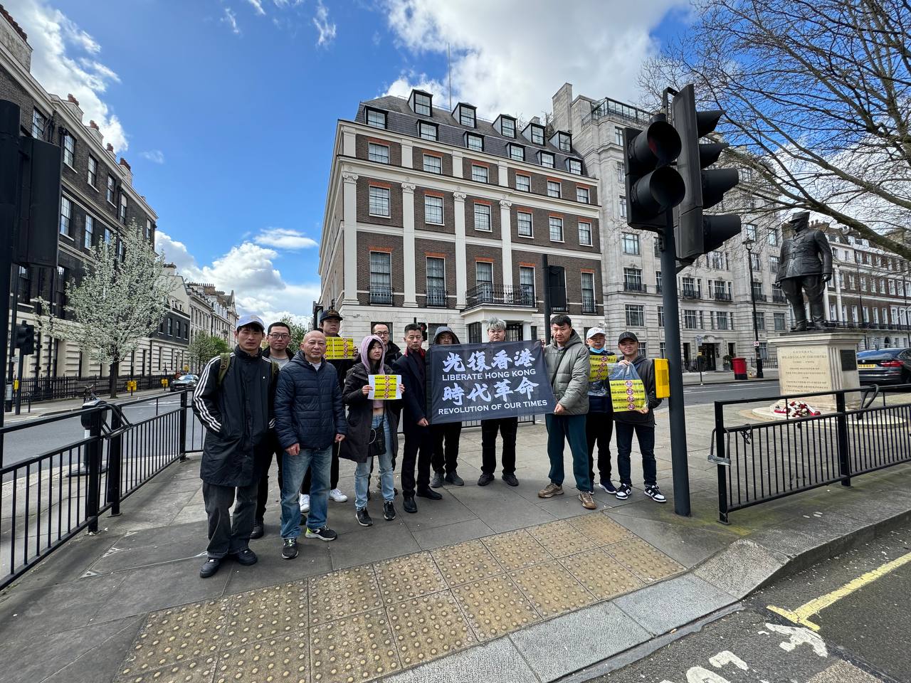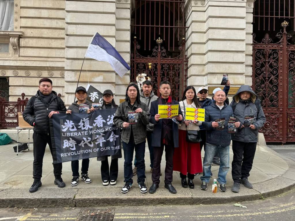 At 2:30 PM, the members rushed to the front of the UK Foreign Office, joining protesters from various Hong Kong democratic groups in the UK, including the British Hong Kongers Association and HKDC, to expose the hypocritical nature of the Hong Kong SAR government’s pseudo-democracy and true dictatorship, and to show support for Hong Kong compatriots around the world in their efforts and sacrifices to break free from human rights shackles.