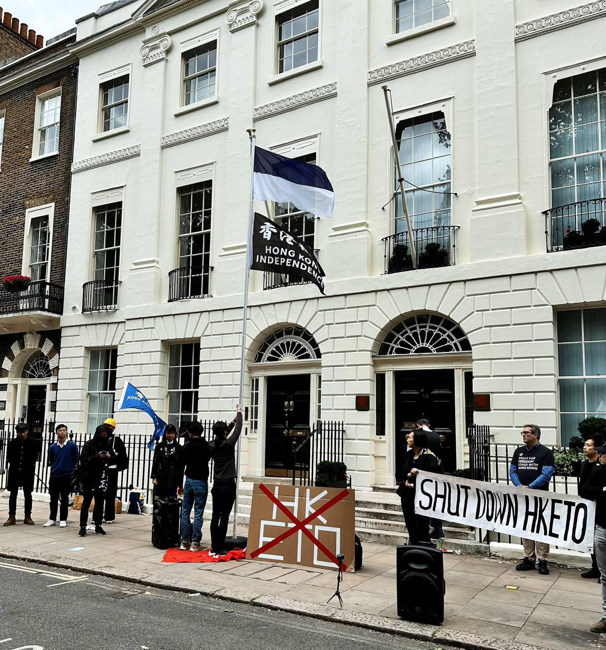 2024年6月9日下午,中国民主党英国总部与英国港侨协会、香港监察等团体在香港政府驻伦敦经贸办(HKETO)外,举行了一场集会抗议活动,要求英国政府关闭HKETO并撤销其外交豁免权。