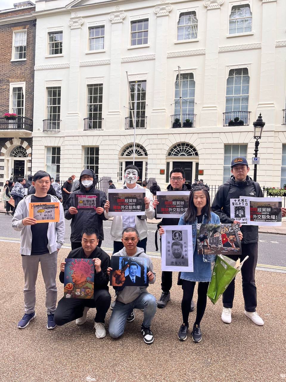 UK Headquarters of China Democracy Party Protests to Demand Closure of Hong Kong Government’s London Office