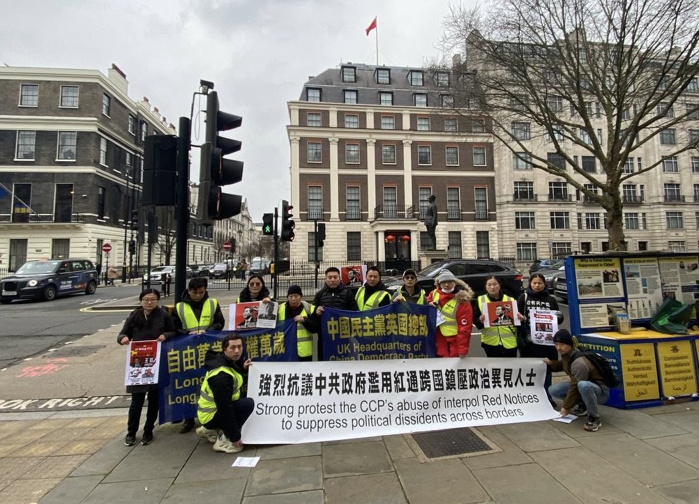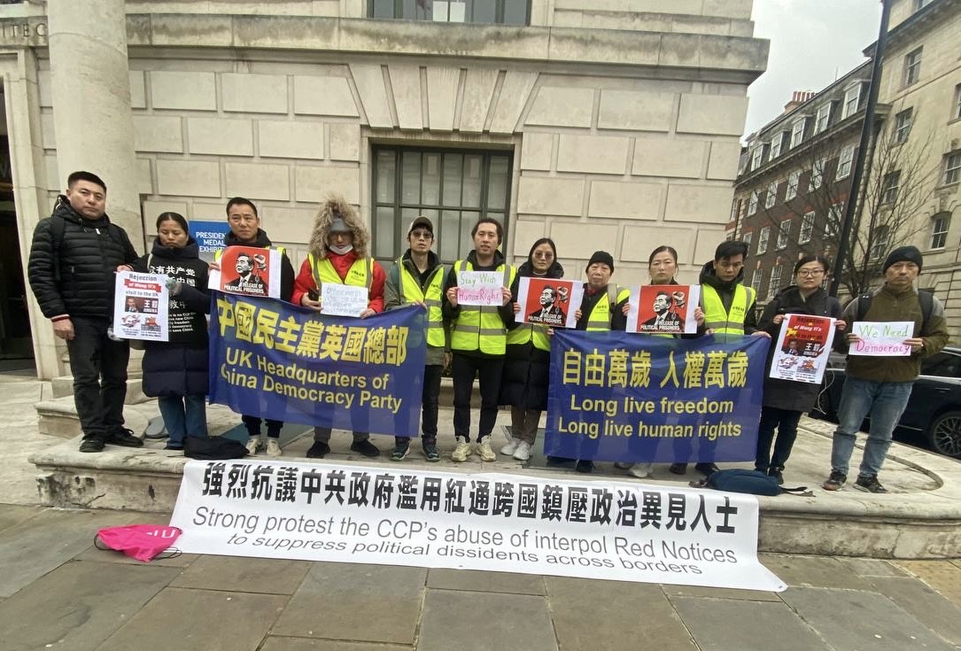 Protest by the UK Headquarters of China Democracy Party in Front of the Chinese Embassy During Chinese Foreign Minister Wang Yi’s Visit to the UK