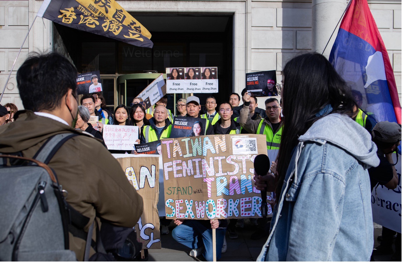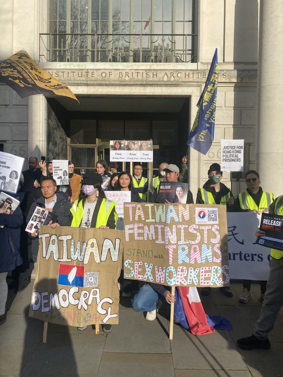 The protest also received support from Hong Kongers, Uyghurs, Tibetans, Taiwanese, and other pro-democracy and human rights groups in the UK, forming a cross-cultural and multi-issue united resistance movement to pressure the Chinese government and raise international awareness of the dire conditions faced by female political prisoners in China. Protesters voiced their demands through chants and banners, and some representatives delivered speeches on-site, calling for the “Release of All Female Political Prisoners” and urging the Chinese government to cease its suppression of female dissidents.