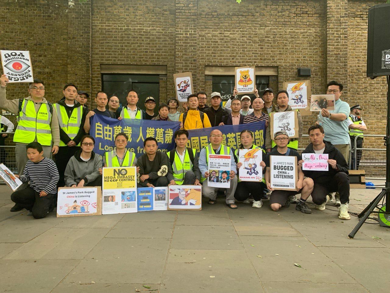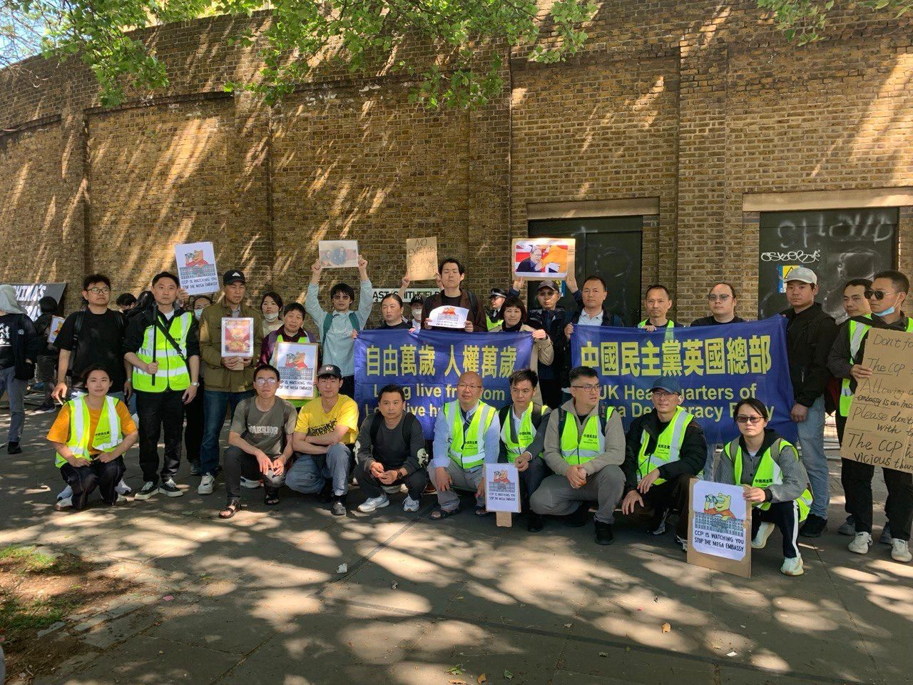 2025年5月3日,中国民主党英国总部联合香港、维吾尔、西藏人权团体,在伦敦皇家铸币厂(Royal Mint Court)外举行大规模抗议集会与游行,强烈反对中国政府在该地兴建所谓“超级大使馆”。