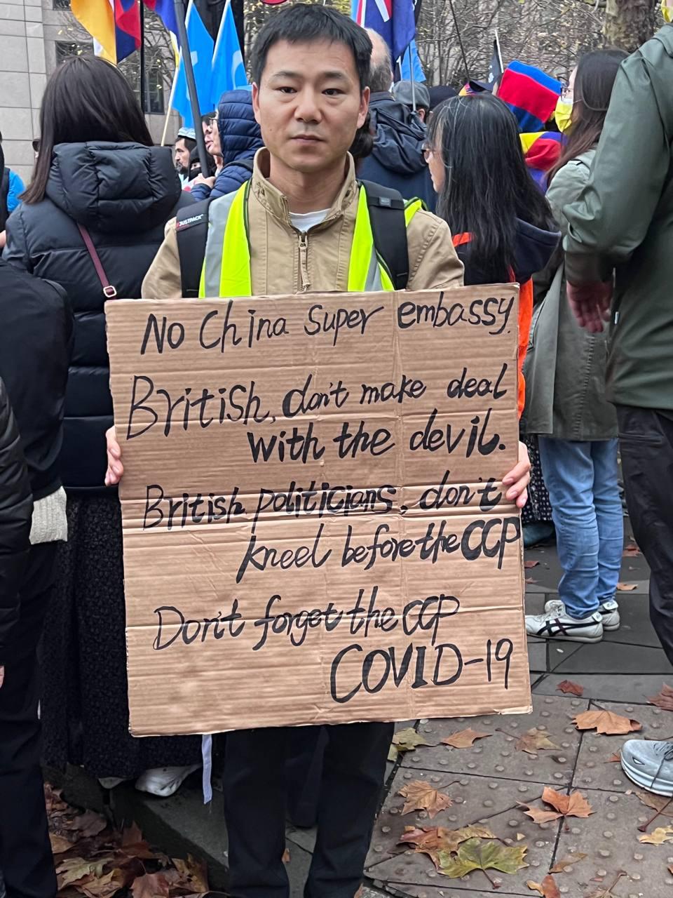 At the same time, members of the UK Headquarters of China Democracy Party held a solidarity protest outside the Chinese Consulate-General in Manchester.