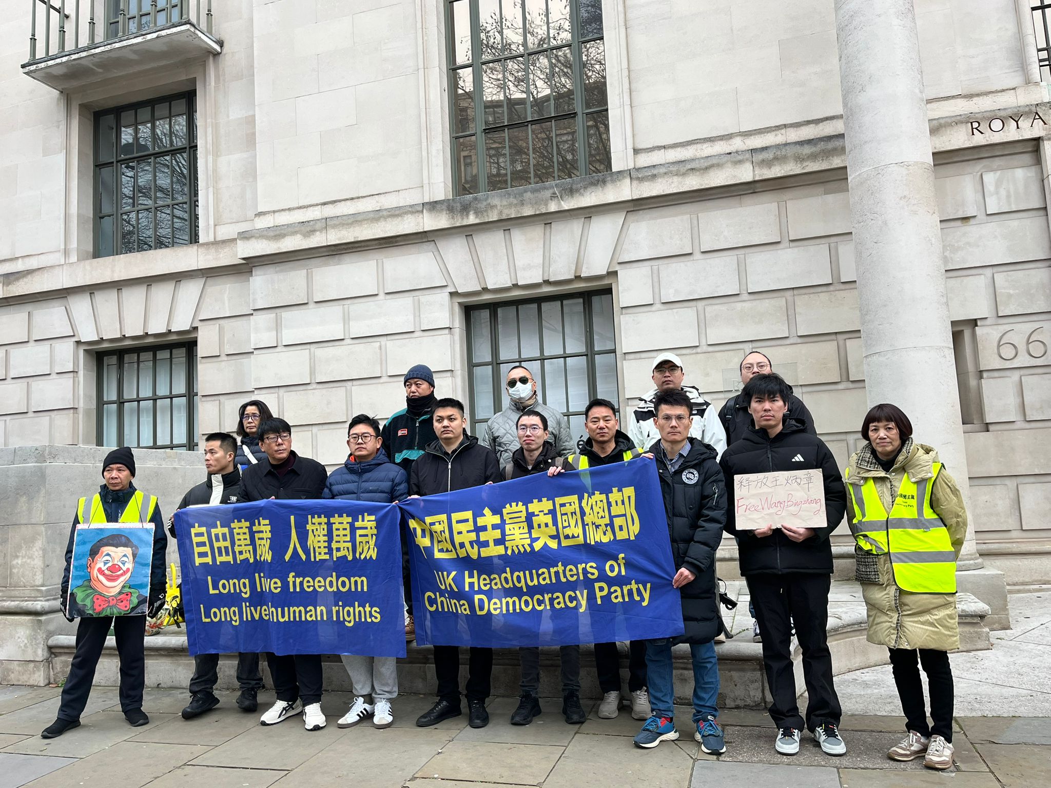 On the afternoon of December 28, 2025, London was gripped by biting winds and a heavy, grey sky that pressed down with a sense of gloom. In front of the Chinese Embassy in London, many members of the China Democracy Party gathered to raise their voices for Dr. Wang Bingzhang, a pioneering figure of the overseas Chinese pro-democracy movement who is about to turn 78. They chanted loudly and called on the Chinese Communist Party (CCP) government to release him immediately.