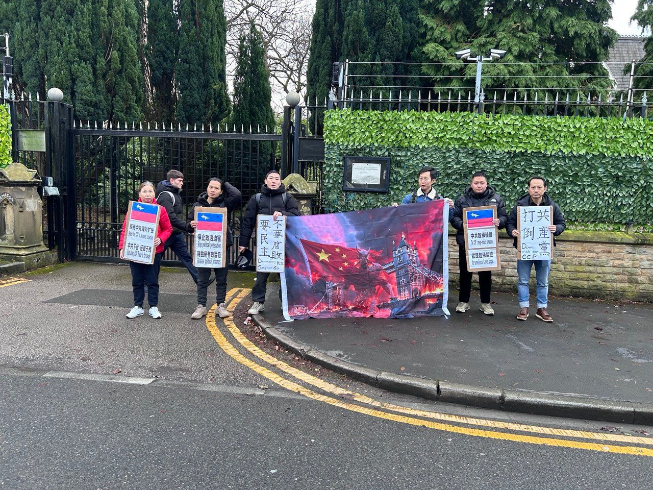 While the London protest was under way, party members and supporters of the China Democracy Party UK Headquarters held a simultaneous march and demonstration in front of the Chinese Consulate-General in Manchester. Protesters followed a pre-arranged route, holding placards and chanting slogans, forming a north–south echo with the main rally in London.