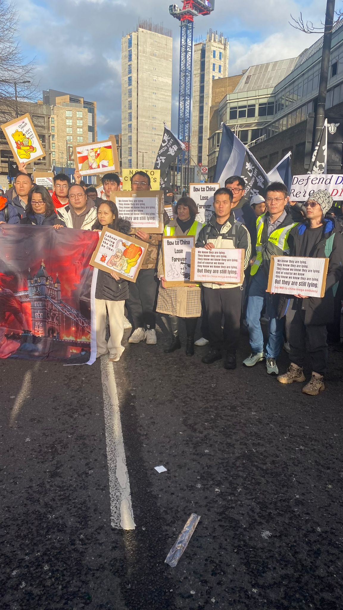 Protesters held a large number of banners, posters and placards, covering themes such as opposition to CCP authoritarian rule, opposition to transnational repression, support for the democracy movements in China and Hong Kong, and calls for the British government to uphold human rights and national security. Multilingual slogans could be seen everywhere, highlighting the international and cross-community nature of this action.